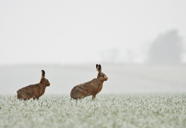getting close on an open field is a challenge in itself , crawling through frosty winter wheat ended with some nice images and very muddy kit.