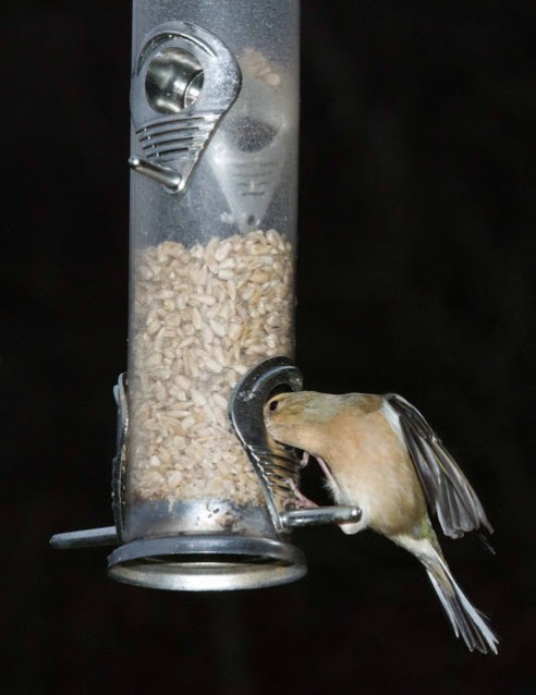 i set up close to the bird feeders – about 8 – 10 feet away, with an external flash and a wireless transmitter and put the focus on manual , then went back to the kitchen and made a cup of tea, its a tough life !!