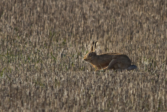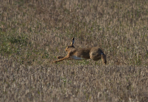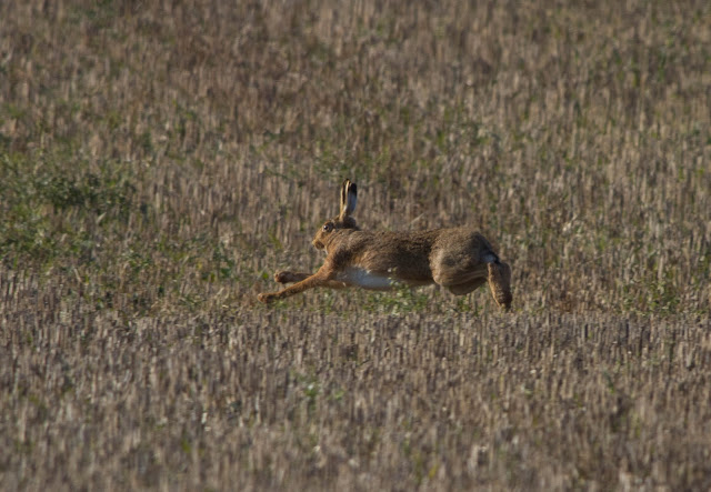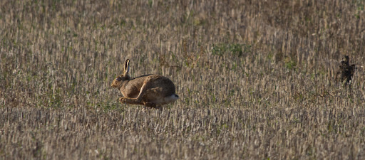 the stubble fields held a few Hares and one was decent enough to run parallel with me , unlike most that run directly away, with just the sight of their rear end disappearing over the horizon.