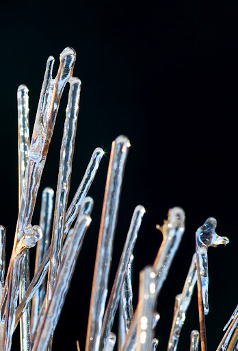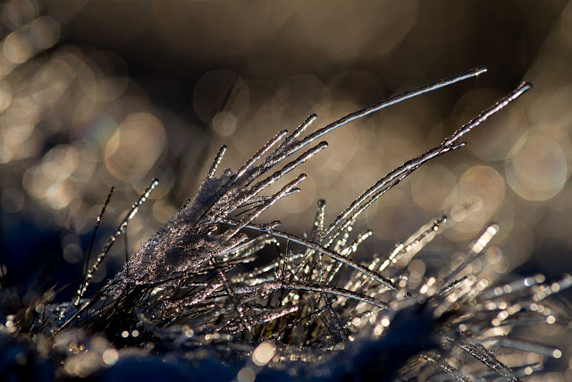 Ice was present all day and never really thawed completely , towards late afternoon the reflected light was amazing through the iced grass.