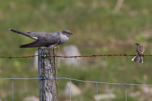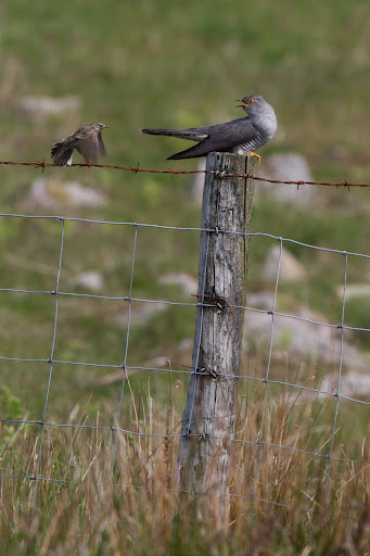 The one left after a short while to land on a fence post nearby with an angry Pipit ( i think ? ) mobbing it.