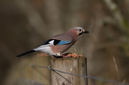 With the start of some cold weather over the past few days , the feeders have attracted more bids than usual. Among them a lot of Jays have been busy filling their crops with peanuts and burying them in the nearby fields.