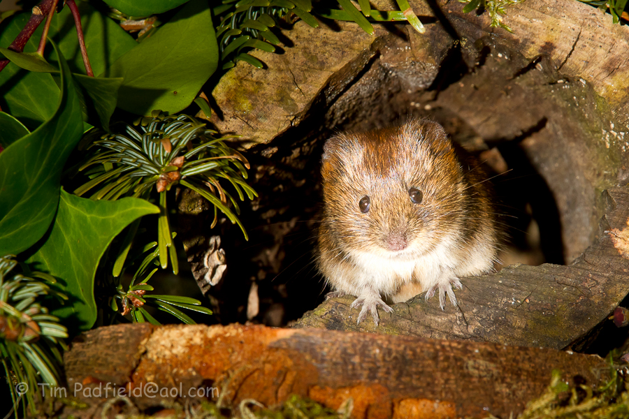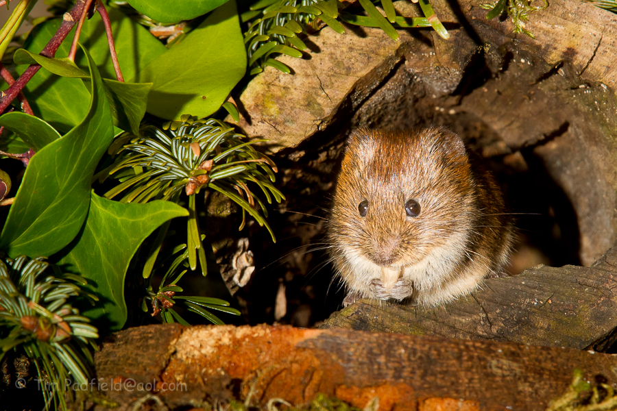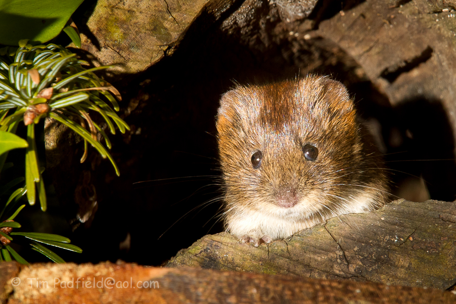 After a short Break the Bank Voles are back again , there seem to be two different types coming to the log , Bank Vole and Field Vole ? , i’ll get some mug shots together and put them up on the site This particular vole will let me get within 2 – 3 feet of it – just sitting there eating some food , totally chilled out, but others seem to be bags of nerves , possibly because they’re in a different territory , they rarely tolerate each others presence. While watching them i ‘ve noticed a Shrew coming in and eating the seeds , but photographing it has been a bit frustrating !!