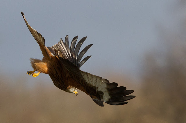 Just a quick glance up the garden and i saw the Buzzard was feeding on the bird table , on seeing me it flew off , giving me time to set up the camera with a wireless trigger – keeping the trigger in my pocket i went inside and carried on with some work while keeping an eye out for its hopeful return . It was almost 5 oclock before it returned, with fading light i pressed the trigger , hoping the range was not too great.